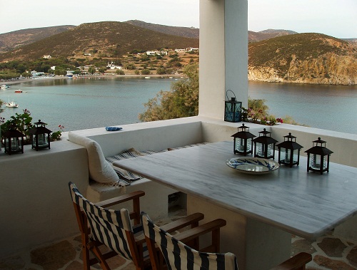 The hotel’s hillside location offers guests a panoramic view of the southern coastline of Patmos and the horizon of the eastern Aegean Sea.